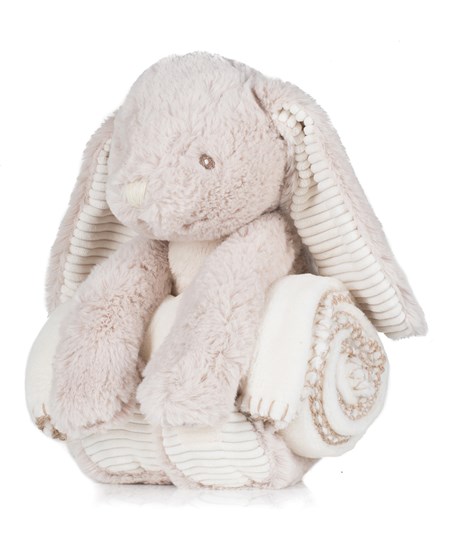 Hop along with the Rabbit and blanket with hook and loop fastening around its paws and feet. Perfect for personalisation and gifting opportunities.